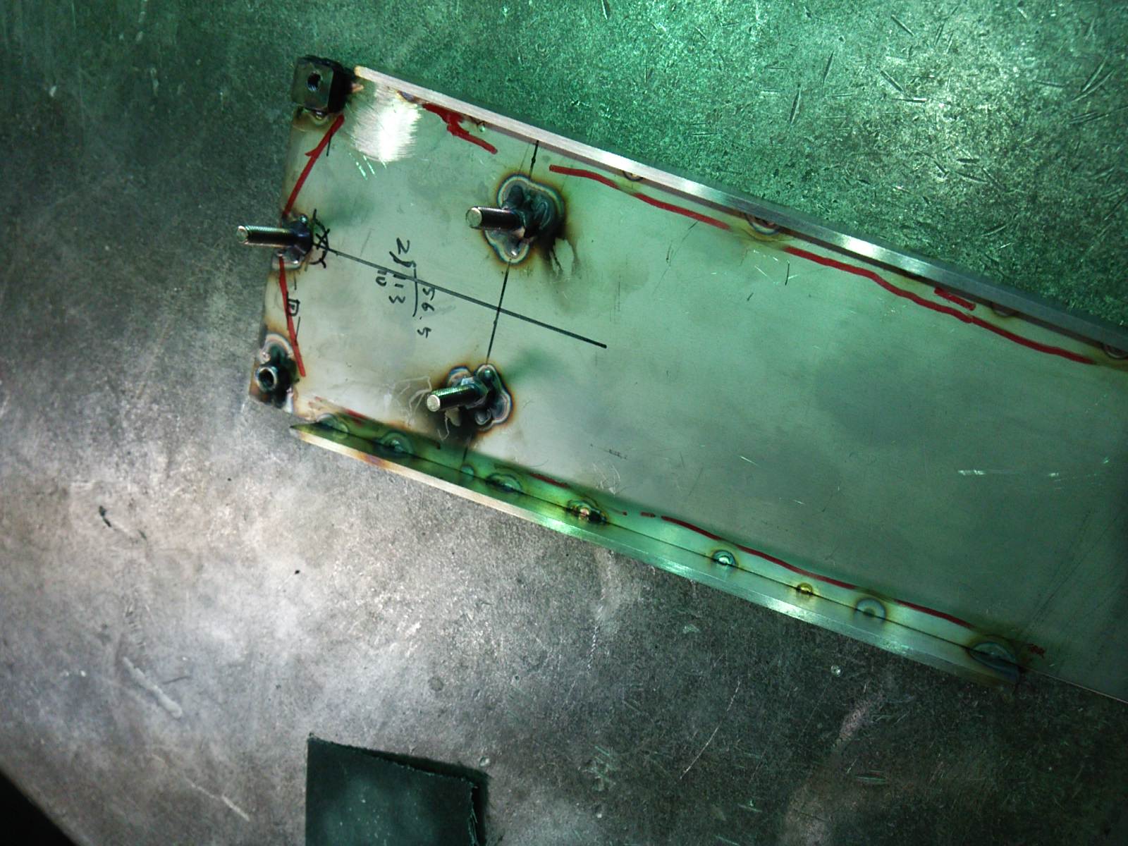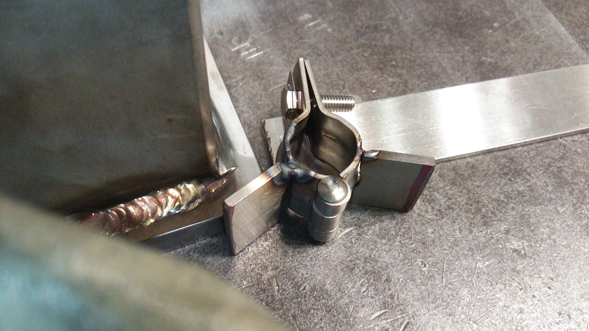 調度良いサイズの配管バンドに板を溶接して脚の付け根を作るよー。